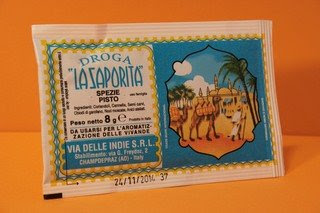 LA SAPORITA (PISTO DI SPEZIE )ingredienti: coriandoli, cannella, semi carvi, chiodi di garofano, noci moscate, anice stellati. La Saporita Spezie Pisto bustone da bustine da gr. SUK SPEZIE CONDIMENTO AROMATICO VIA DELLE INDIE EX BERTOLINI.