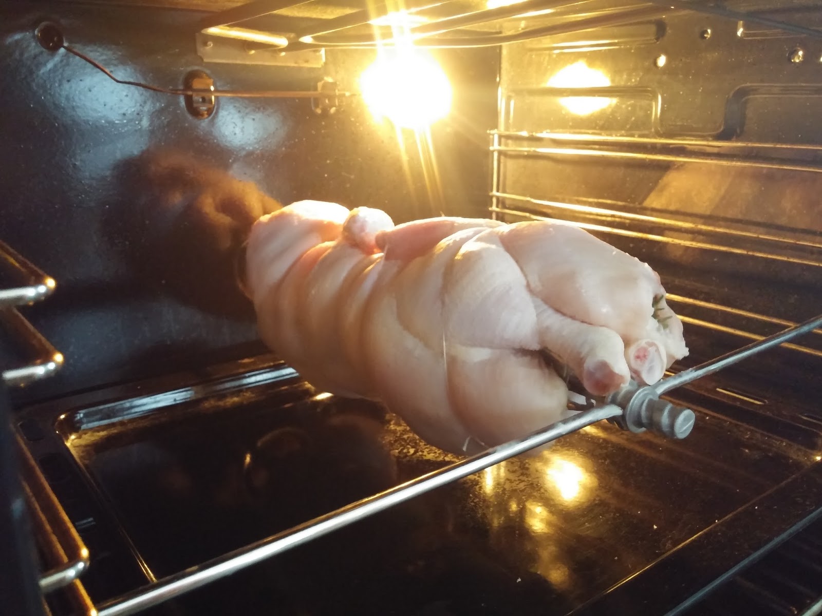 Carne perfettamente cotta grazie al grill girevole. Caratteristiche di allestimento (a seconda del modello). Nelle rosticcerie il pollo allo spiedo viene cotto nel classico forno elettrico ma è possibile prepararlo a casa sul barbecue o nel forno.